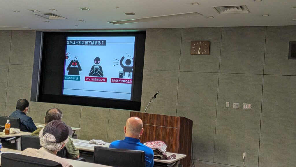 故に左右確認するときには首を動かし左右確認をしないと巻き込み事故等を引き起こすと言う貴重なお話と一向に減らない飲酒運転に関して、男女の違いと体重によりアルコールが6時間から8時間で抜ける量が異なり、それをきちっと自分でコントロールしないと「飲酒運転」となり大きな事故につながるというお話を頂く。