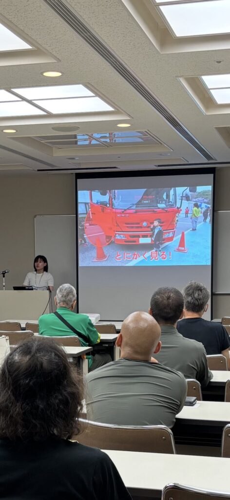 開会は池上警察署からお借りしたDVD『飲酒運転を絶対にしない、させない』の上映から始まりました。その後、池上交通安全協会会長森田光隆様の挨拶、池上警察署 交通課 課長代理近藤康憲様の講和を頂き、続いて南関東日野自動車㈱ 熊谷春香様による『直線の死角 ~見えているようで見えてない~』を主題とした講習をして頂きました。最後に支部長谷口様からセフティードライバーコンテストにおいて無事故無違反を達成したチームに記念品が贈られ、池上分会会長藤村様からの挨拶で講習会は閉会となりました。なお講習会参加者は53名でした。