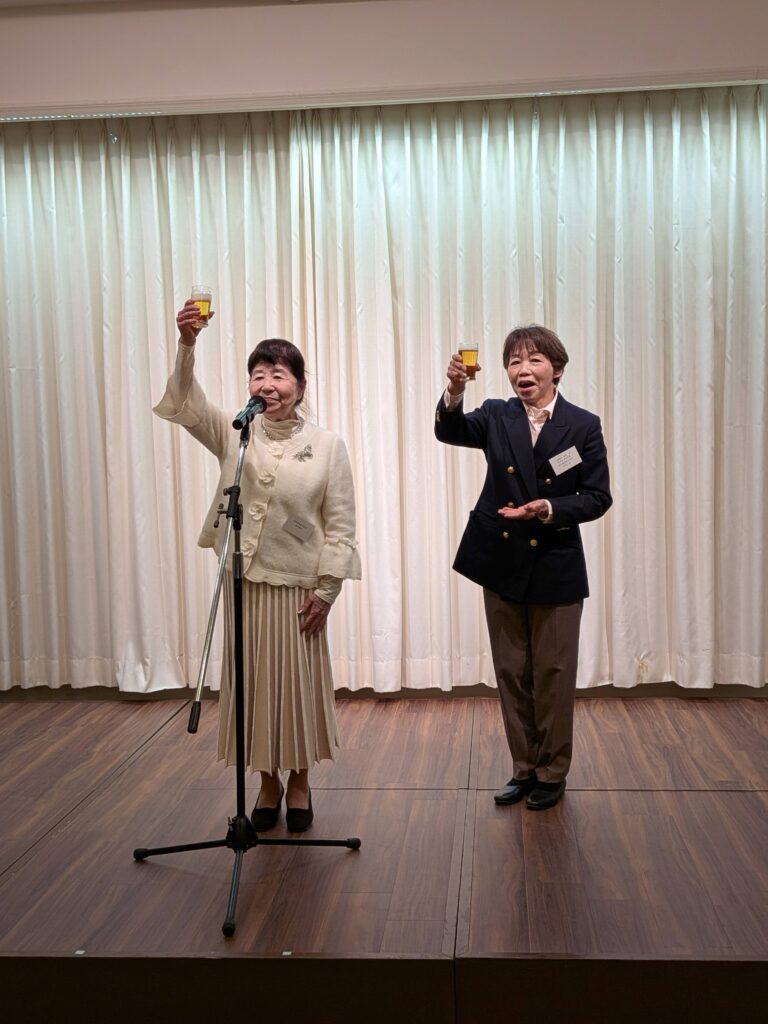 懇親会では女性部部長の加川一江様と恒例の内田發子様にご登壇いただき、新年にふさわしい華やかなダブル乾杯となりました。