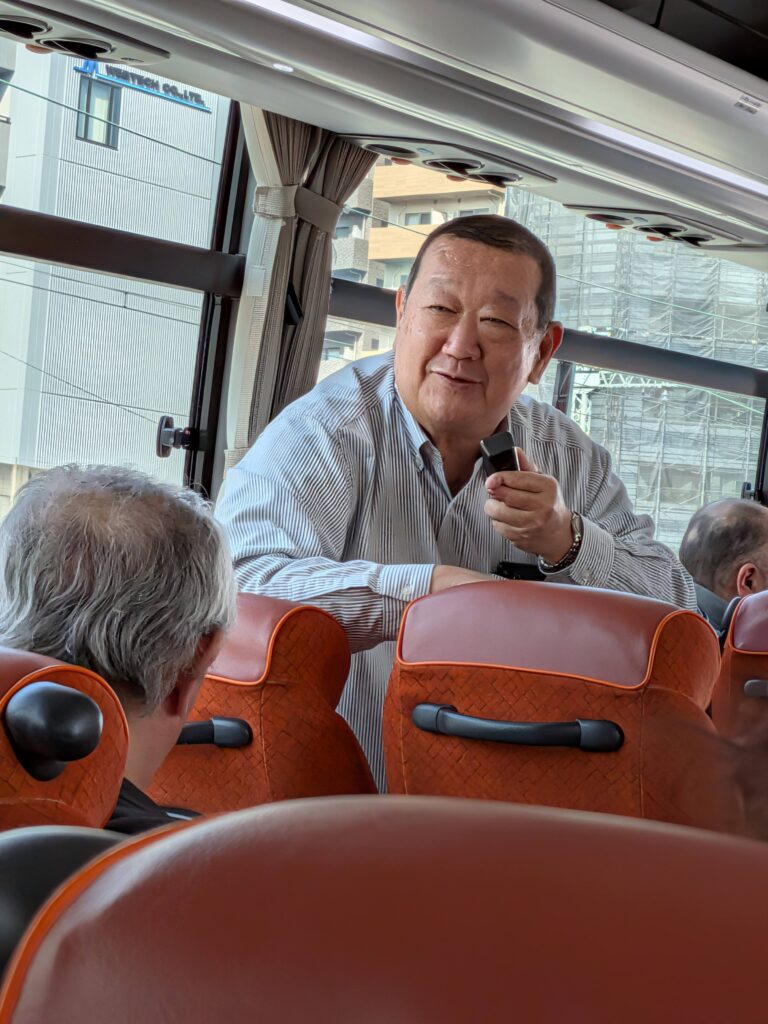 出発まもなく谷口支部長より「今回の支部旅行の発案は、昨年度の「標準的運賃の届出」を支部会員にお願いした結果を踏まえ、その成果を得た支部に対して、本部からの活動慰労金を財源として企画した」と趣旨説明があり、分会の枠を超えた親睦の会になる事を願っておりますとのご挨拶をいただきました。