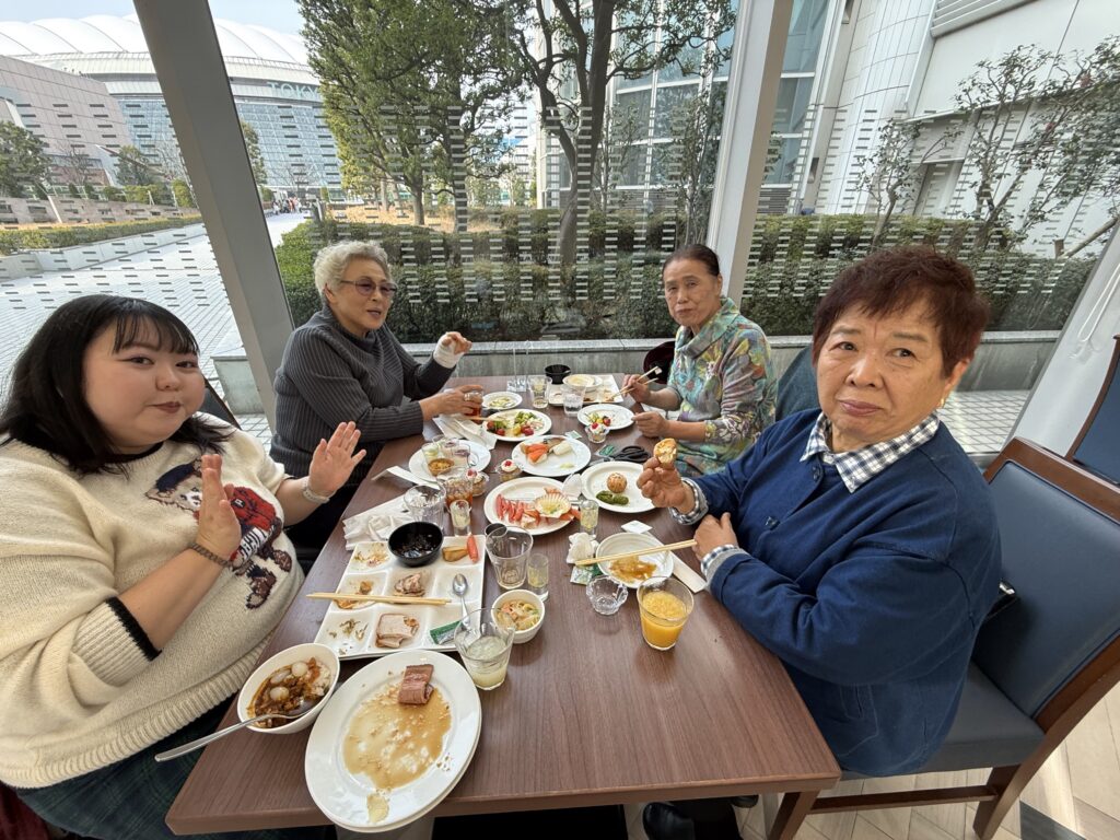 昼食は、「東京ドームドームホテル スーパーダイニング・ラッサ」にて豪華食べ放題。出発時間が来るまで、大いに談笑交えて楽しみました。