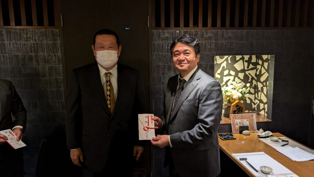 菊池副会長に乾杯の御発声をしていただき、功労賞や適性原価調査の話など大いに盛り上がる中、塩田幸慶副分会長の中締めでお開きとなりました。